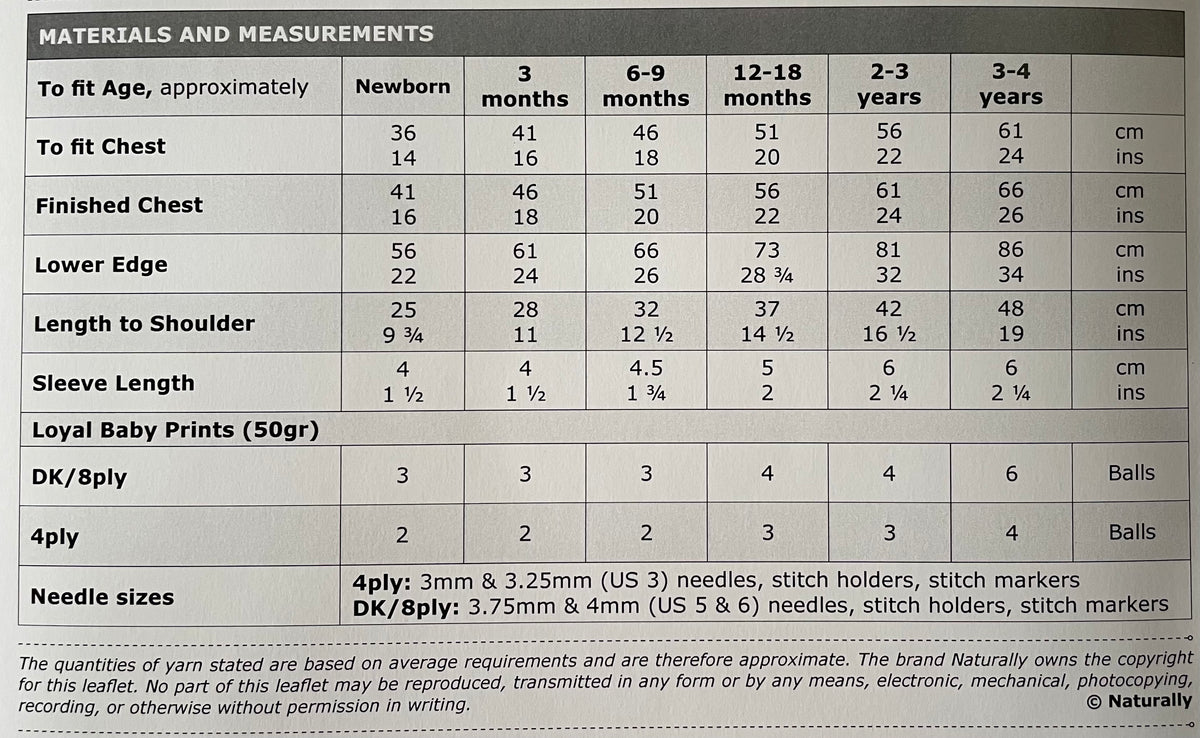 Sizing: The pattern provides instructions for a range of children's sizes, from newborn to 4 years.