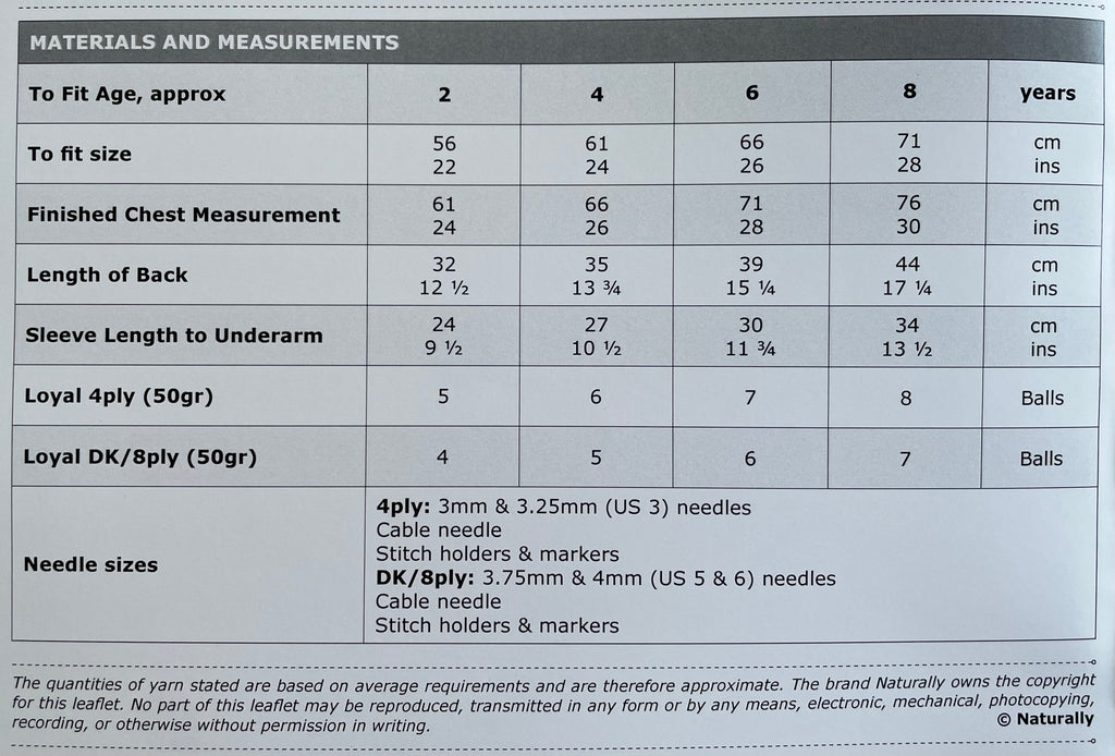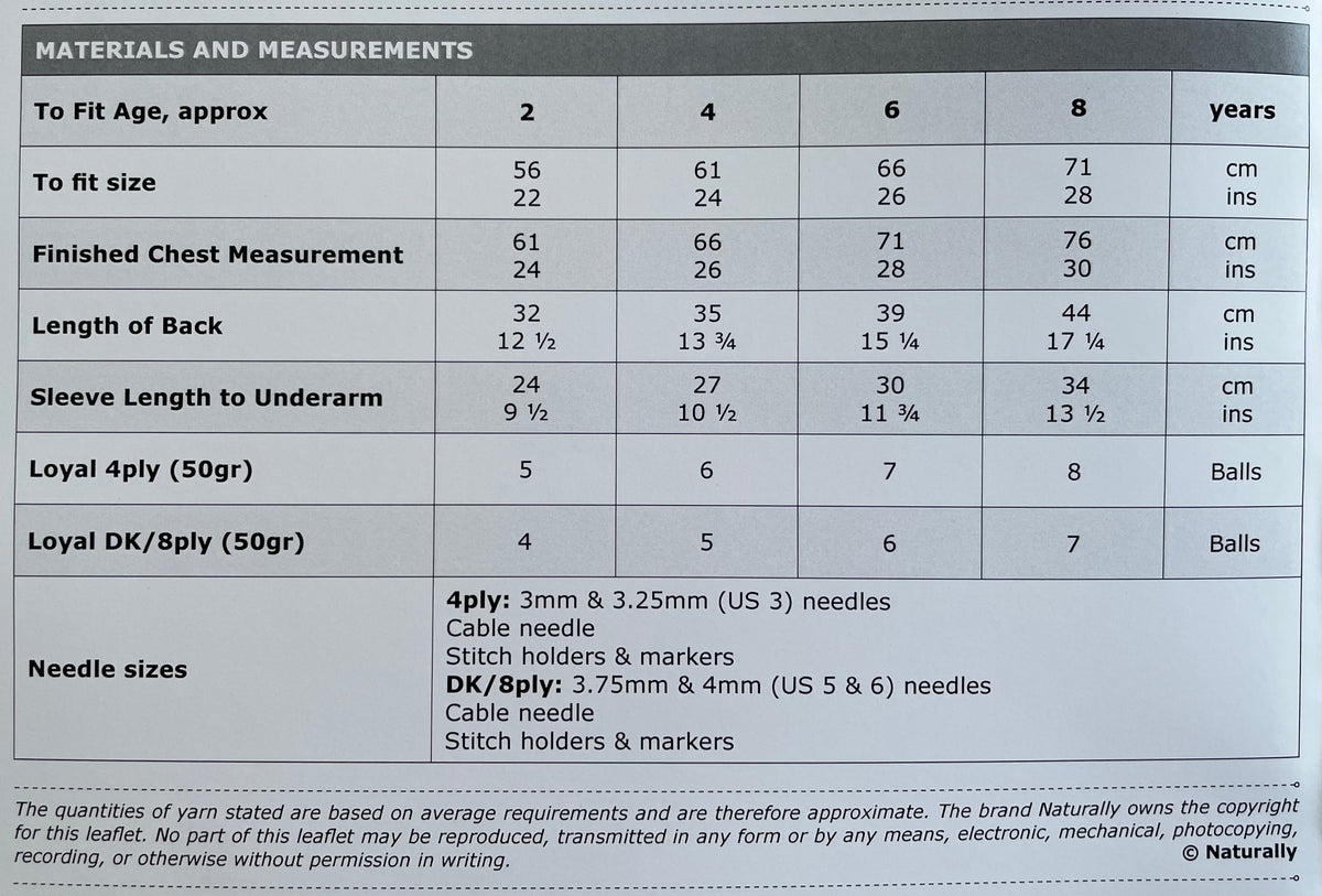 Yarn Recommendation: The pattern is designed for Naturally Loyal Wool DK (8ply) or Naturally Loyal (4ply) yarns. This high-quality merino wool will ensure the finished sweater is both soft and beautiful.