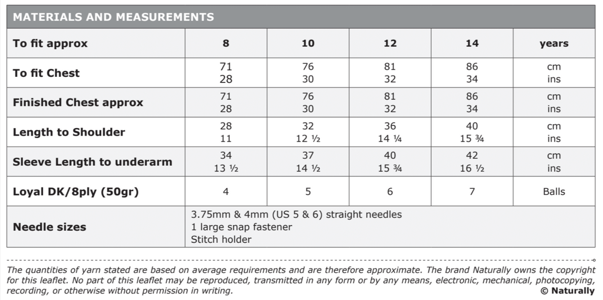 Yarn Recommendation: The pattern is designed for Naturally Loyal Wool DK 8ply yarn, which is available in both classic and new colors. This high-quality yarn will ensure the finished jacket is both soft and beautiful.