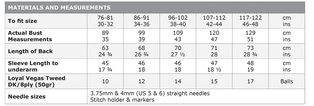 Yarn Recommendation: The pattern is designed for Naturally Loyal Vegas Tweed 8ply yarn. This high-quality yarn will ensure the finished sweater is both soft and beautiful. The tweed effect will also add a unique, textured look to the finished garment.