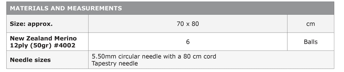 Yarn Recommendation: The pattern is designed for Naturally New Zealand Merino 12ply yarn. This high-quality merino wool will ensure the finished blanket is both soft and beautiful.
