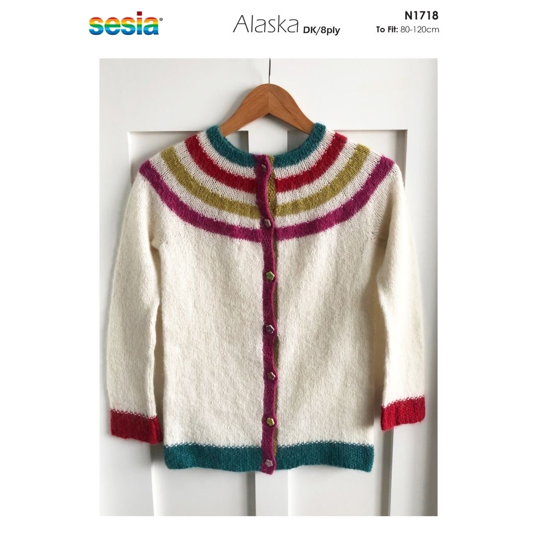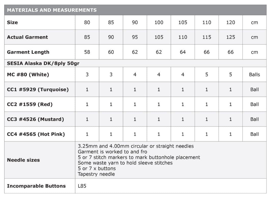 Yarn Recommendation: The pattern is designed for Sesia Alaska, an 8ply yarn. This high-quality merino wool will ensure the finished cardigan is both soft and beautiful.