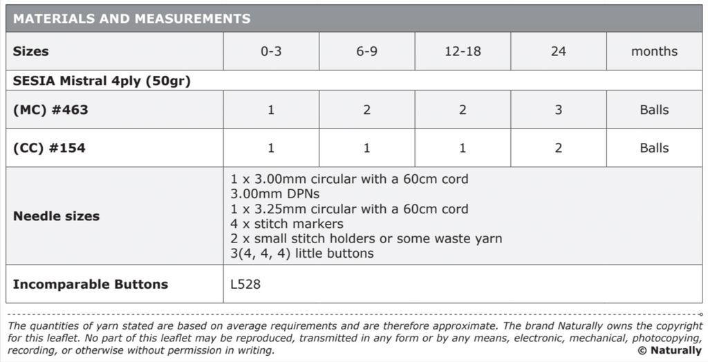 Sizing: The pattern provides instructions for a range of children's sizes, from newborn to 2 years.