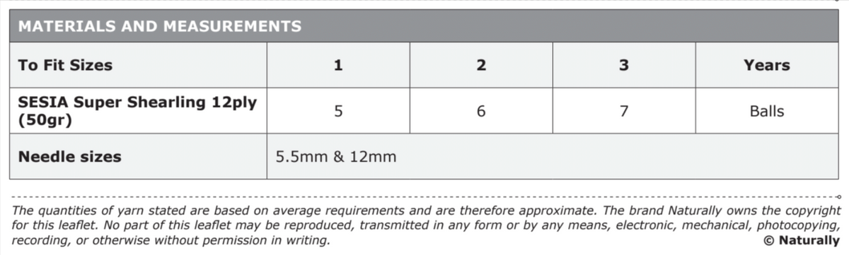 Sizing: The pattern provides instructions for a range of children's sizes, from 1 to 3 years.