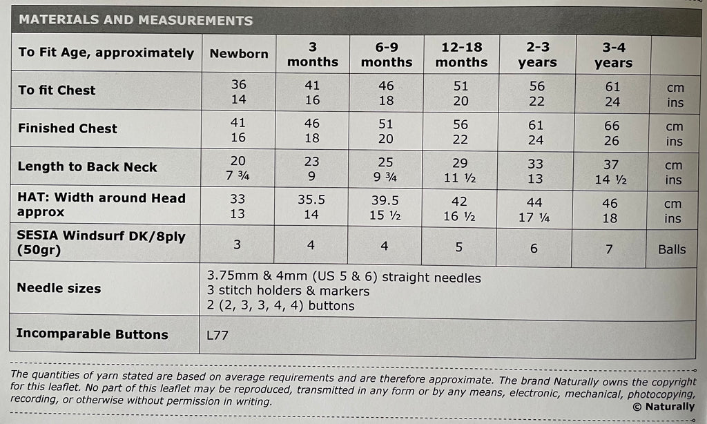 Sizing: The pattern provides instructions for a range of children's sizes, from newborn to 4 years.