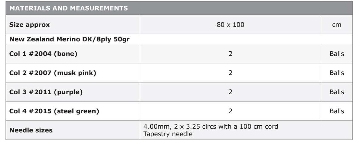 Yarn Recommendation: The pattern is designed for Naturally New Zealand Merino 8ply yarn. This high-quality merino wool will ensure the finished blanket is both soft and beautiful.