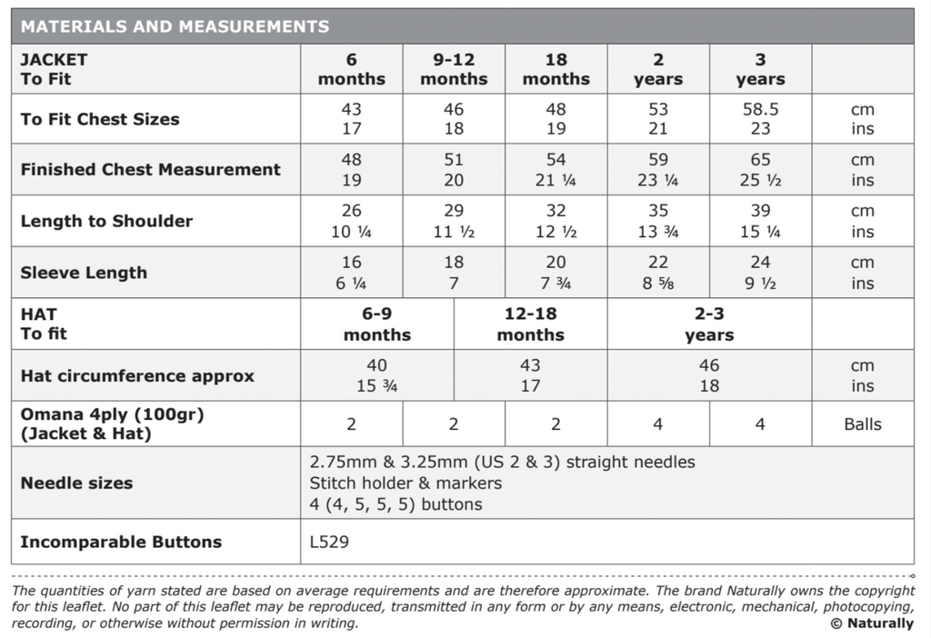 Yarn Recommendation: The pattern is designed for Naturally Omana, a 4ply yarn. This high-quality yarn will ensure the finished garments are both soft and beautiful.
