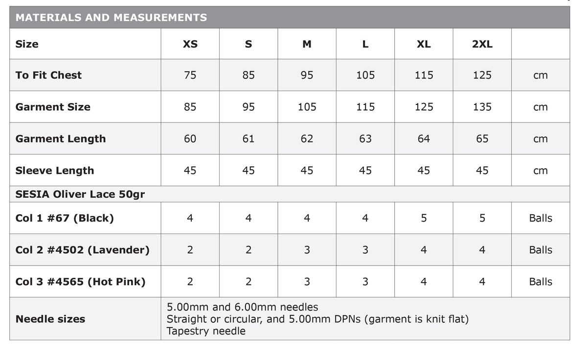Yarn Recommendation: The pattern is designed for Sesia Oliver, a 2ply lace yarn. This high-quality yarn will ensure the finished sweater is both soft and beautiful.