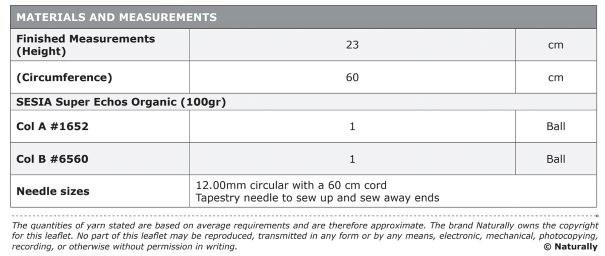 Yarn Recommendation: The pattern is designed for Sesia Super Echos, a chunky yarn. This will result in a cozy, warm, and stylish accessory that knits up quickly.