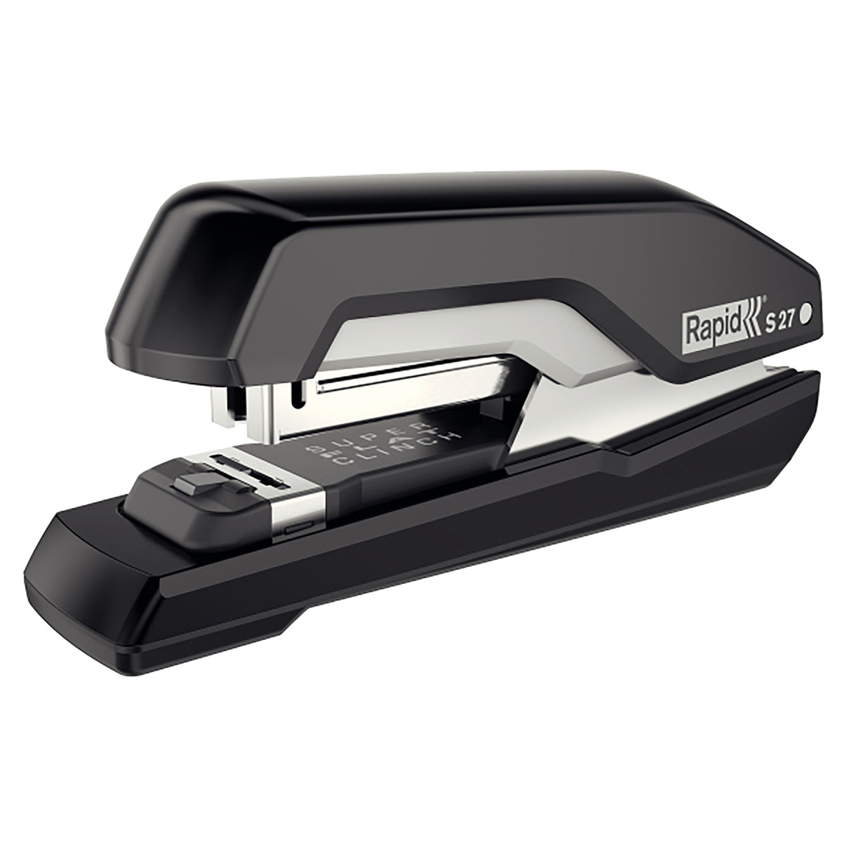 This professional half strip stapler, equipped with patented SuperFlatClinch technology, reduces your paper stacks by 40%. Unique design for great combination of both desktop and in-hand stapling.