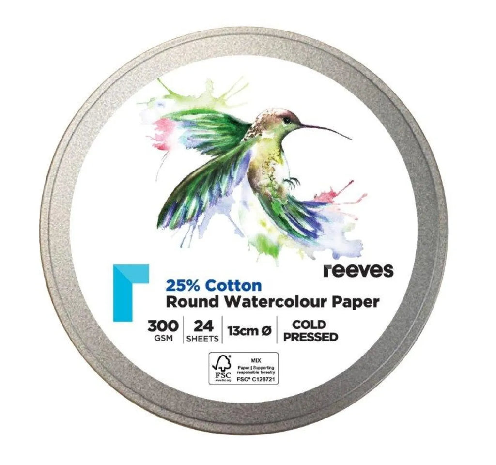A unique and portable foundation for creative watercolour ideas, the Reeves Round Watercolour Paper Tin Set offers quality and convenience in a compact format.
