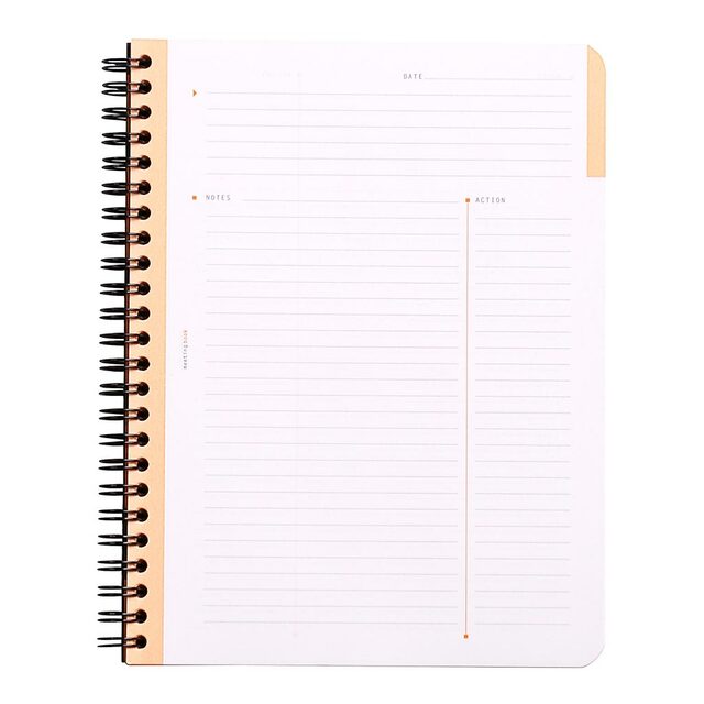 The Meeting Book has pre-printed pages with defined sections: Date, Notes and Action, for better notekeeping.
