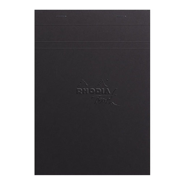 Features include: 120gsm smooth grey Maya® paper, head stapled pad, Maya black 270g scored cover, Rhodia Touch logo embossed on front cover, 50 detachable microperforated sheets.