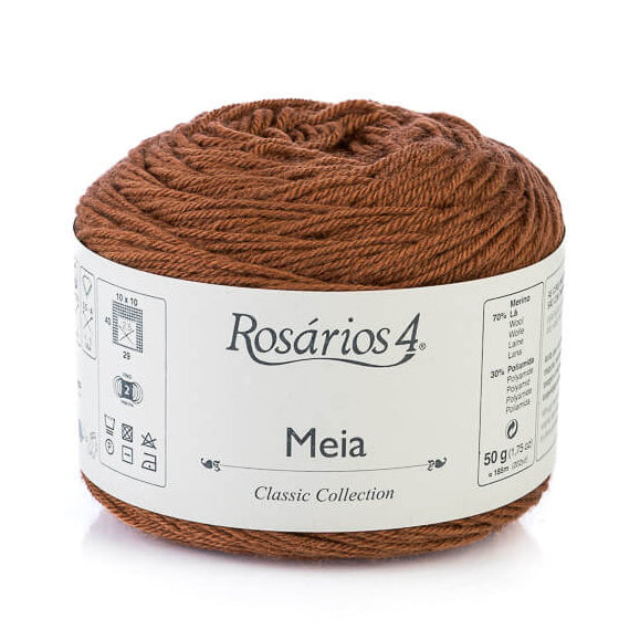 Meia, the Portuguese word for sock, is the perfectly named yarn for your next pair of handmade socks. This classic, reliable sock blend from Rosários 4 features a blend of 70% Merino wool for warmth and softness, and 30% Polyamide for durability and structure—essential for resisting wear on heels and toes. With its self-patterning print colours and soft 4-ply weight, this yarn creates beautiful, eye-catching socks effortlessly. The extensive colour palette also makes Meia the ideal "go-to" yarn for mixing and matching cuffs, heels, and toes, allowing for endless customisation. Best of all, this yarn is practical for everyday wear and tear. While recommended for a mild hand wash, it is machine washable up to 30°C, making care simple for all your footwear projects!