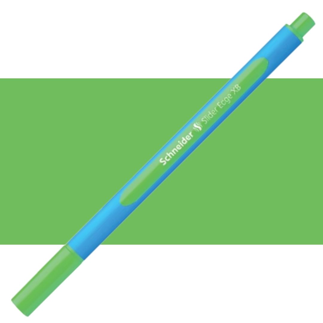 The Slider Edge ballpoint pen does not roll on the desk. Extra Broad (XB) line width. Ergonomic triangle tip. Rubberised grip.