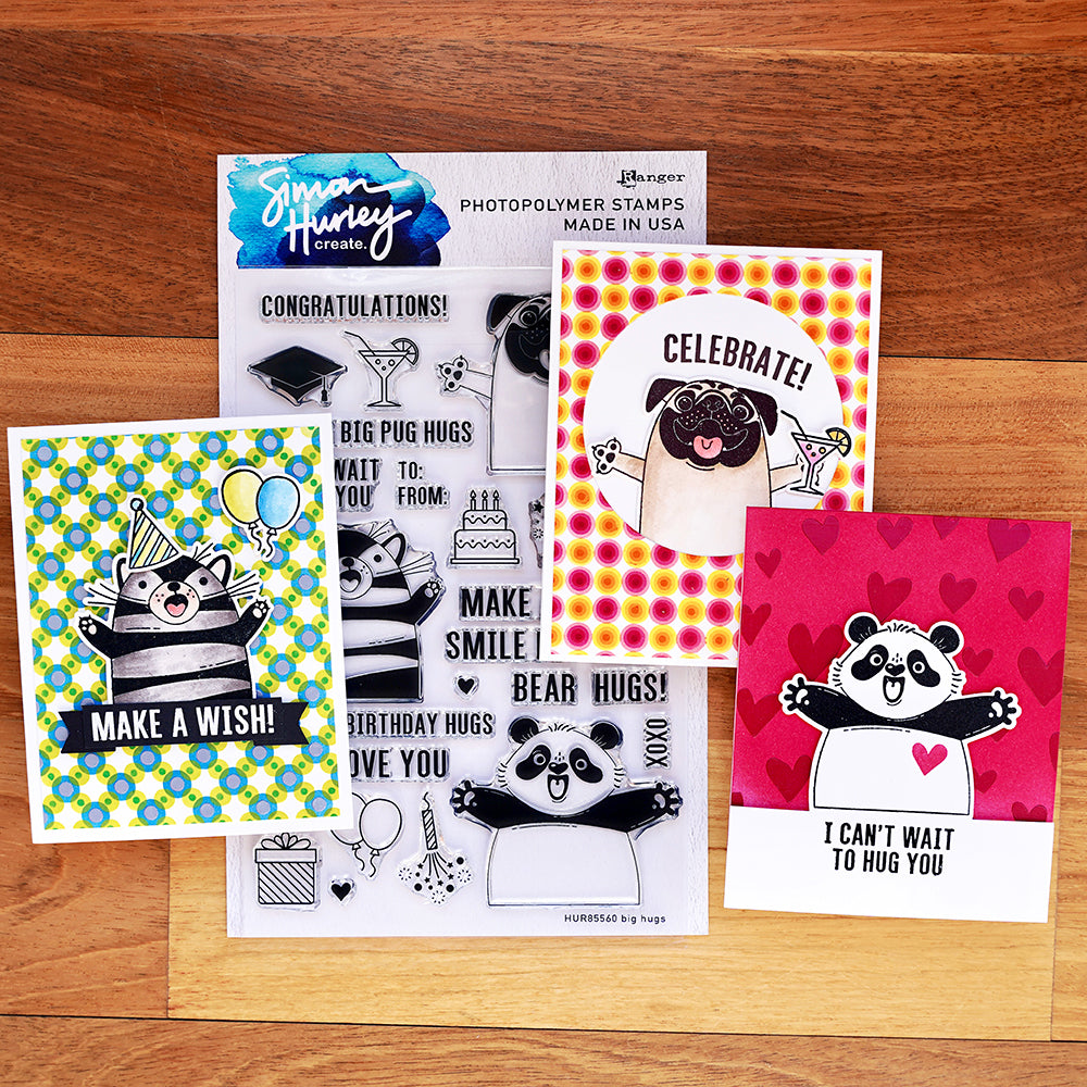 The Simon Hurley create. Big Hugs stamp set is a charming and versatile tool for card makers and paper crafters. Designed by artist Simon Hurley in collaboration with Ranger Ink, this 26-piece set features a variety of cute, hand-drawn images and coordinating sentiments, perfect for creating heartwarming cards to celebrate friendship and show you care. Sized 6"x9".