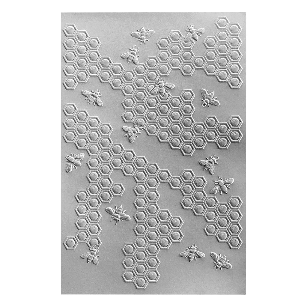 The Spellbinders Bee-Cause 3D Embossing Folder (E3D-078) is a charming botanical tool from the Through the Arbor Garden Collection by designer Susan Tierney-Cockburn. This folder features a delicate, non-uniform pattern of randomly placed honeycombs with busy honeybees flitting around the motifs. Because it is a 3D folder, it uses variable-depth technology to "sculpt" the paper, making the bees and hive cells appear multi-dimensional rather than just flat outlines.