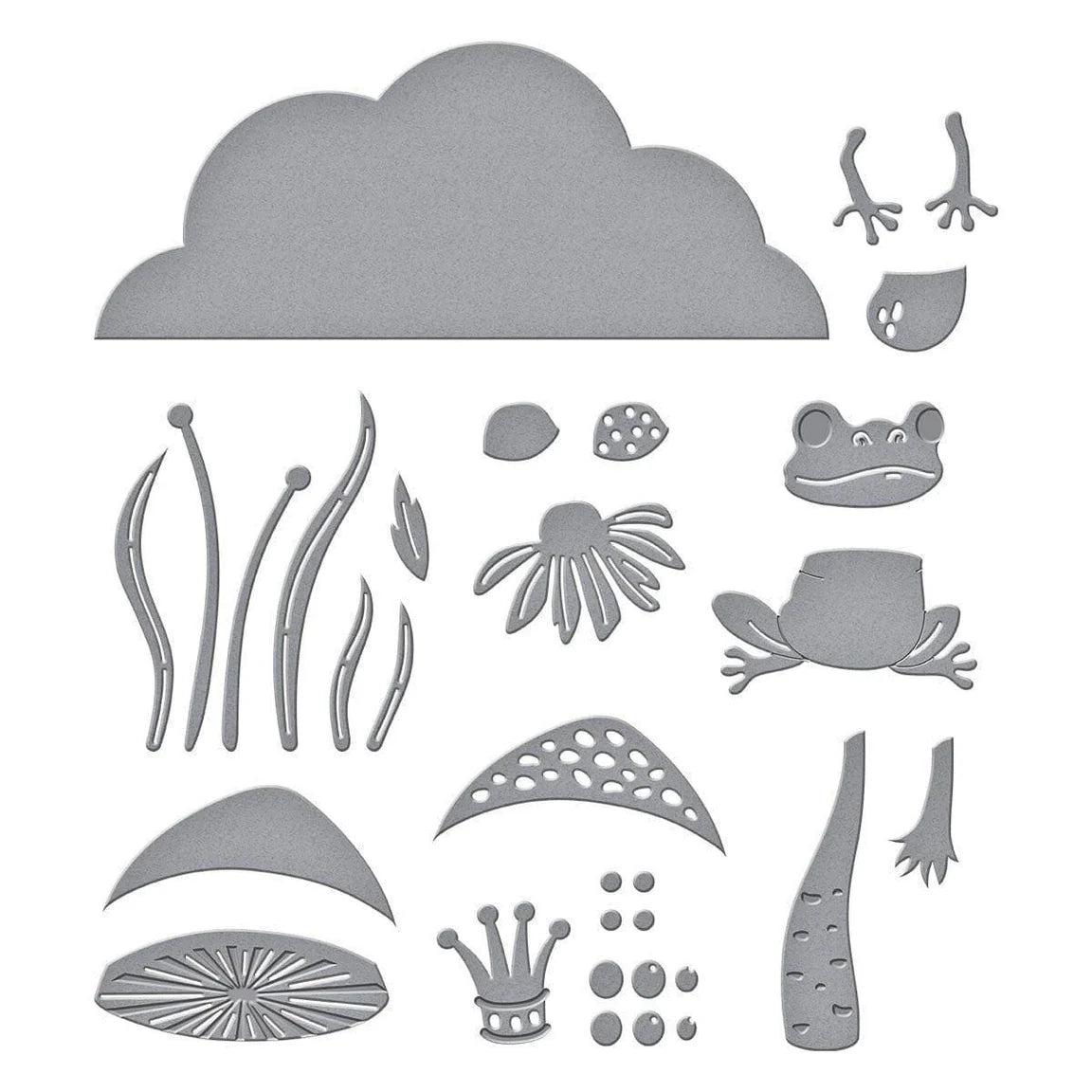 18-Die Scene Builder: This is a comprehensive kit. It isn't just a frog; it includes everything for a finished landscape, including a multi-part Mushroom Cap, Cloudy backdrop, and four different grass styles for added depth.