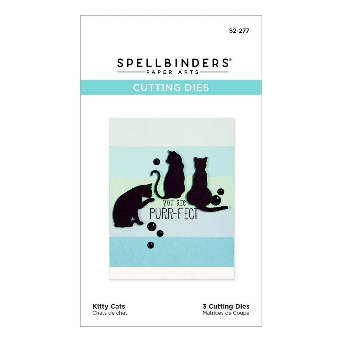 The Spellbinders Kitty Cats Etched Dies (S2-277) are a charming and essential set from the popular Die D-Lites collection. This set features three unique kitty cat silhouettes in different playful poses. Designed as "wafer-thin" etched dies, they can cut, emboss, and stencil with a single template, allowing you to add professional-level detail and dimension to any feline-themed project.