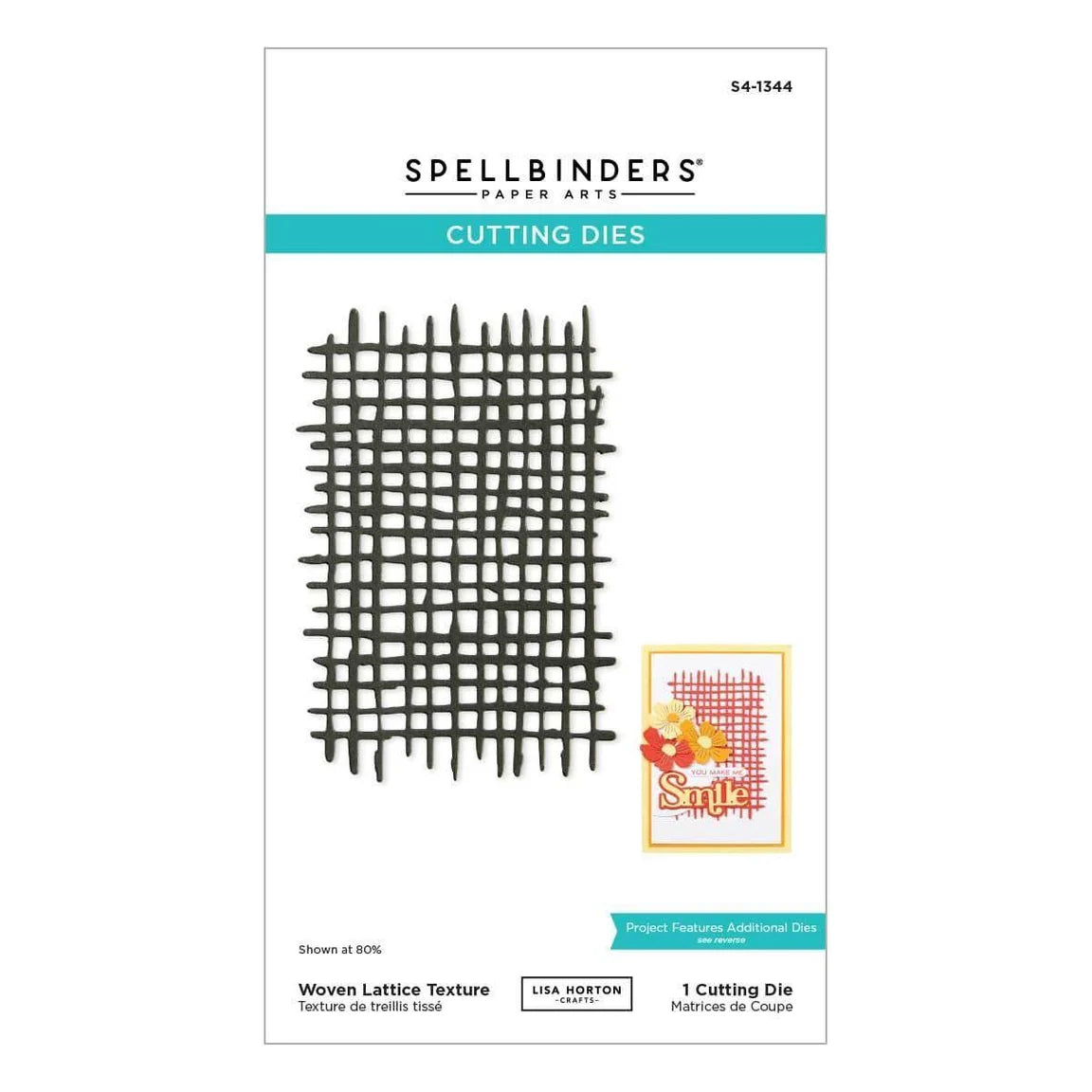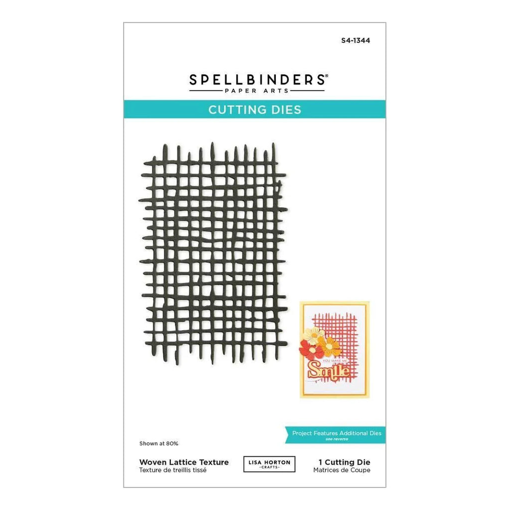 The Spellbinders Woven Lattice Texture Etched Dies (S4-1344) is a beautifully intricate background die from the Spotlight Frames and Florals Collection by designer Lisa Horton. This single-die set cuts a stunning open-weave, natural-looking lattice pattern into your cardstock. It is specifically designed to provide a sophisticated, textured backdrop that can be spotlighted with frames or layered with florals for a romantic, vintage, or rustic look.