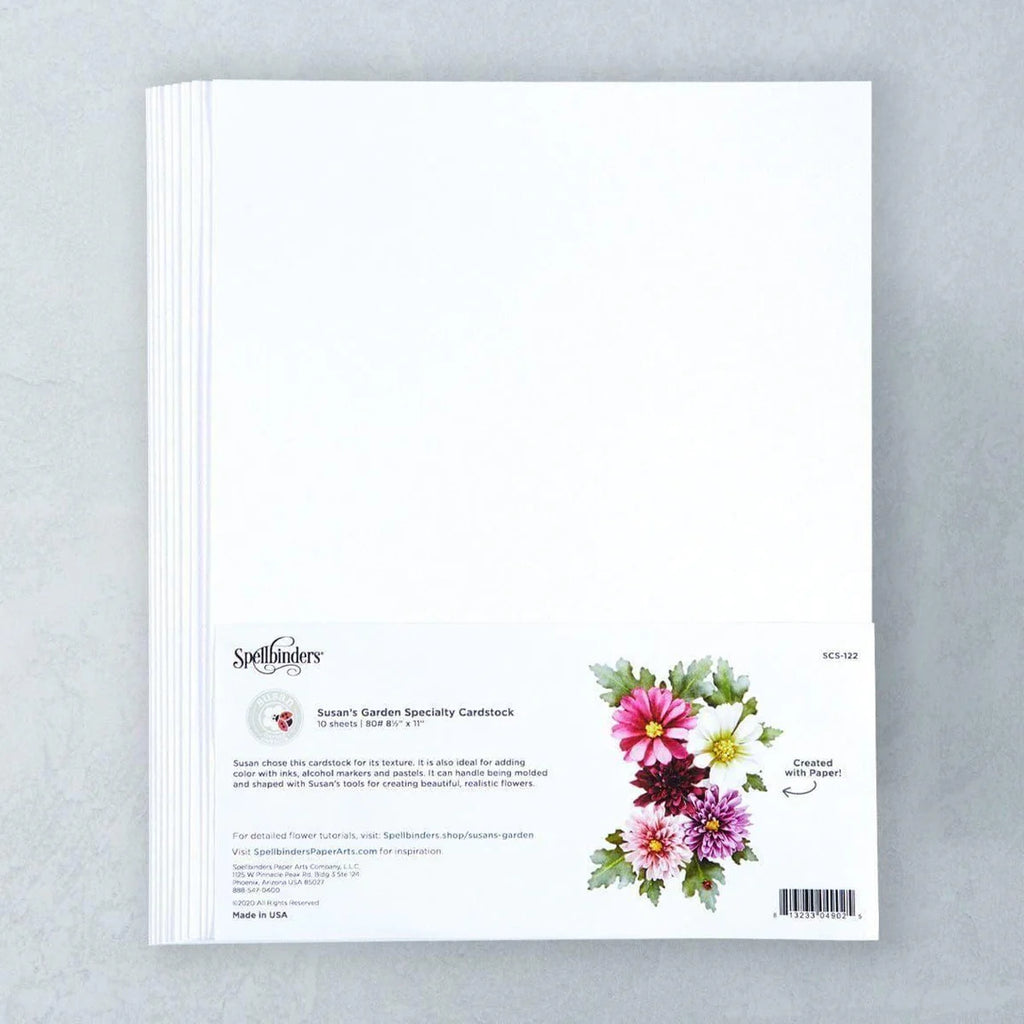 The Susan’s Garden Specialty Cardstock (SCS-122) is a precision-engineered paper designed by world-renowned floral artist Susan Tierney-Cockburn. This pack contains 10 sheets of 8.5" x 11" cardstock that features a unique, stippled texture finish. Unlike standard smooth cardstock, this specialty paper is formulated to mimic the organic feel of real flower petals and leaves, making it a critical foundation for realistic 3D botanical crafting.