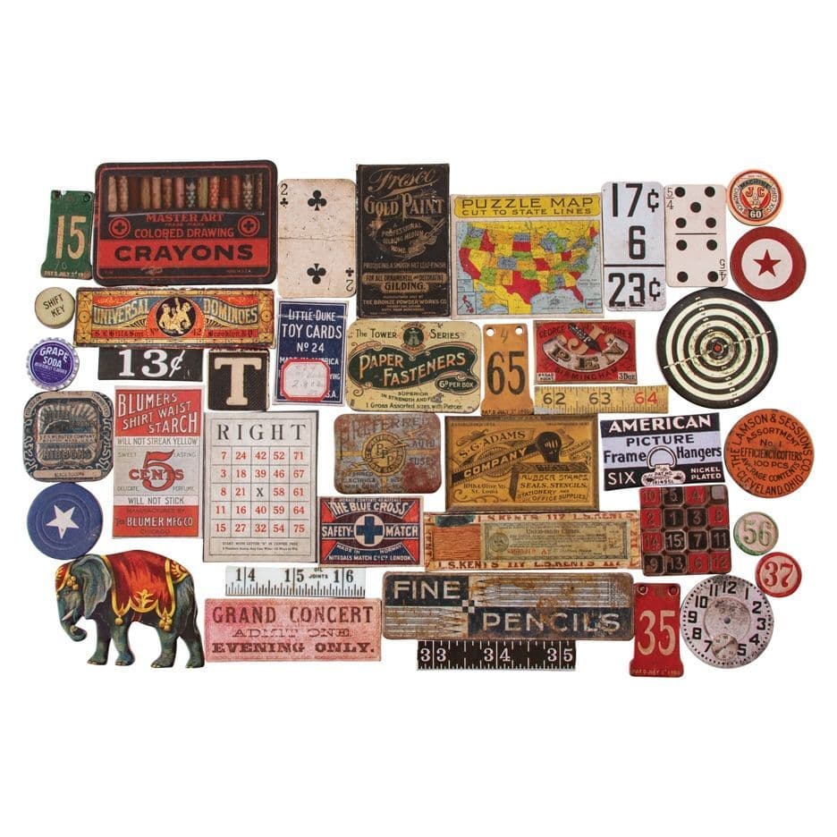 Dig into a treasure trove of distressed ephemera without the mess! The Tim Holtz Idea-Ology Baseboards Junk Drawer 40 Pieces is a brilliant collection of 40 thick chipboard die-cuts, perfectly designed to emulate the salvaged typography and found objects you might discover in an antique "junk drawer."