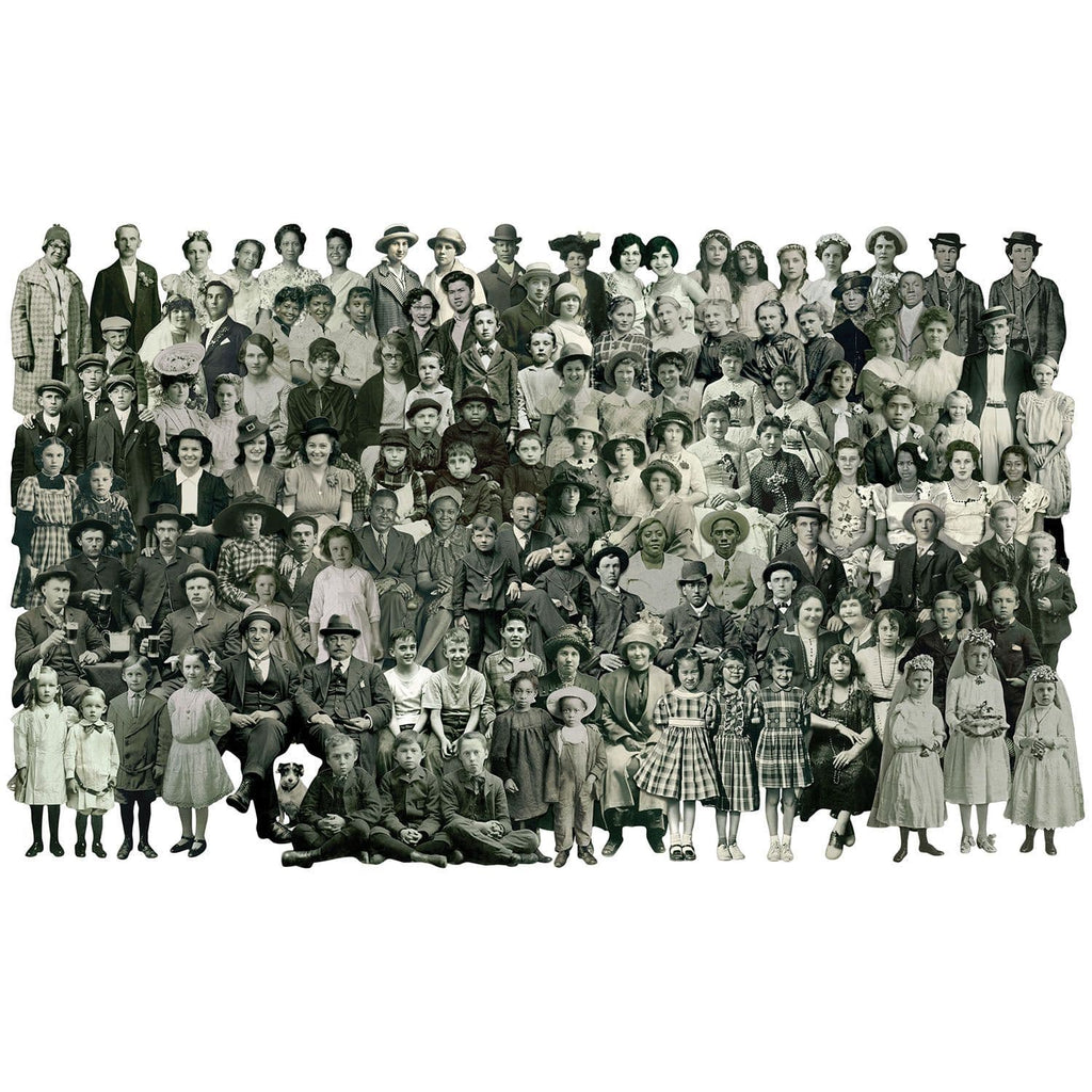 Introduce intricate human connection and historical narrative to your artwork with the Tim Holtz Idea-Ology Paper Dolls Groups 50 Pieces. This evocative collection contains 50 assorted die-cut figures sourced from genuine vintage black and white photographs, specifically featuring groups of people—friends, families, travelers, and crowds. Elements range from 3-5/8 to 5-7/16 in height by 2 to 5-7/16 in width.