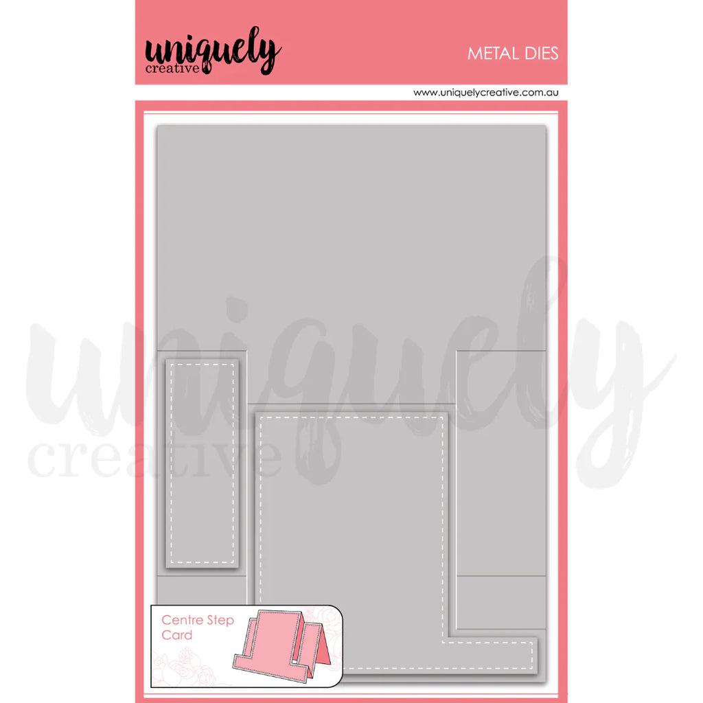 The Uniquely Creative Centre Stepper Card Die (UCD2204) is a professional-grade interactive die set that creates a classic "step" card architecture. Unlike the side-stepper version, this design features a large central stage flanked by two lower side steps, making it the "smart" choice for symmetrical compositions and central focal points.