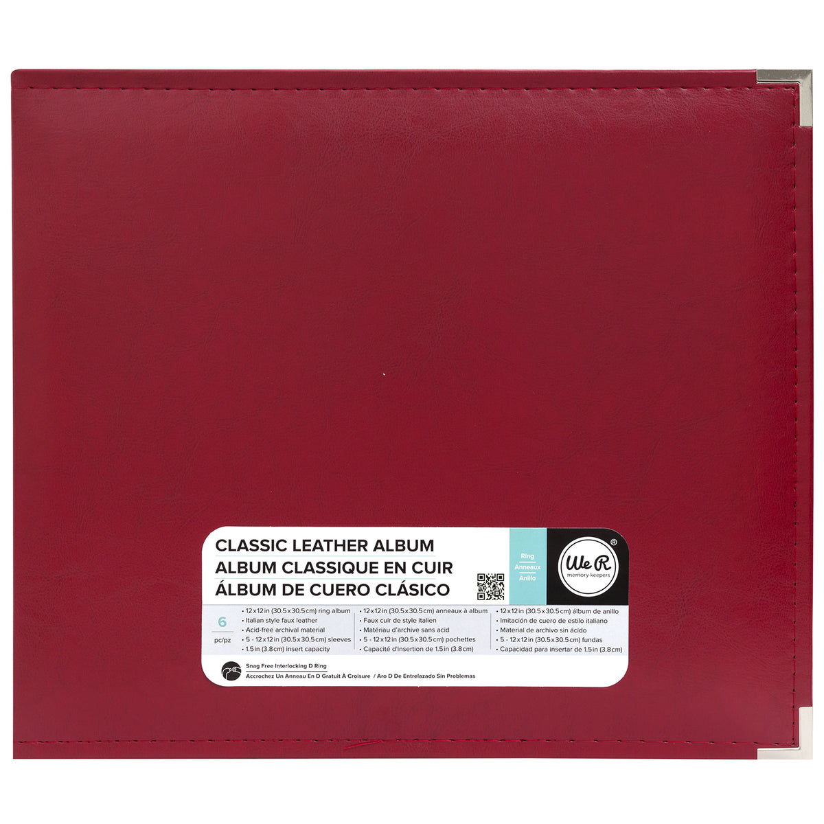 We R Memory Keepers-Faux Leather 3 Ring Binder. The ideal album for holding all your scrapbook pages! This D-ring photo album has reinforced metal corners and a metal label holder on the spine. This package contains one 12x12 inch faux leather 3-ring binder and five 12x12 inch sleeves. Comes in a variety of colors. Each sold separately. Acid free. Archival quality.