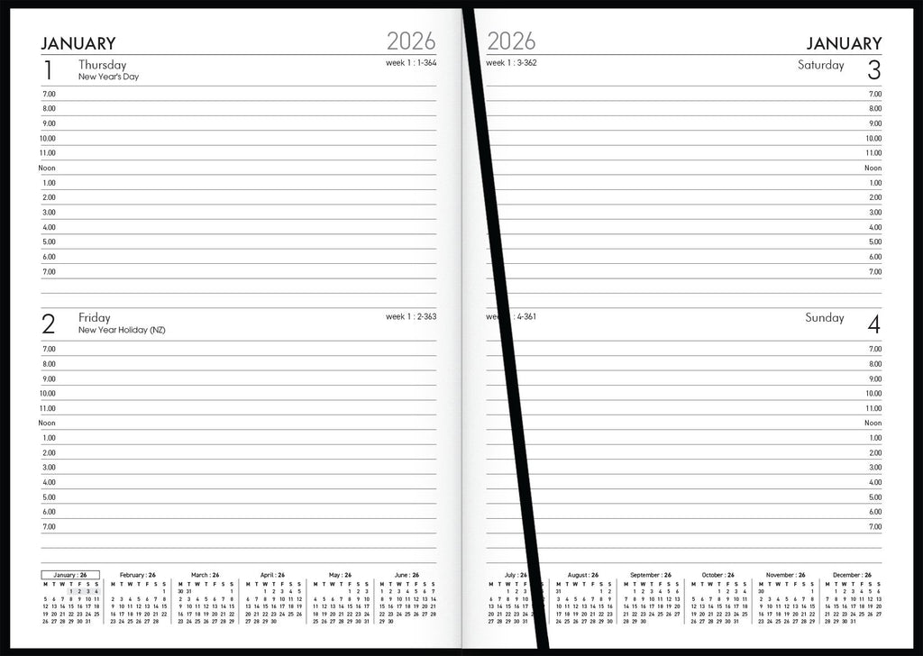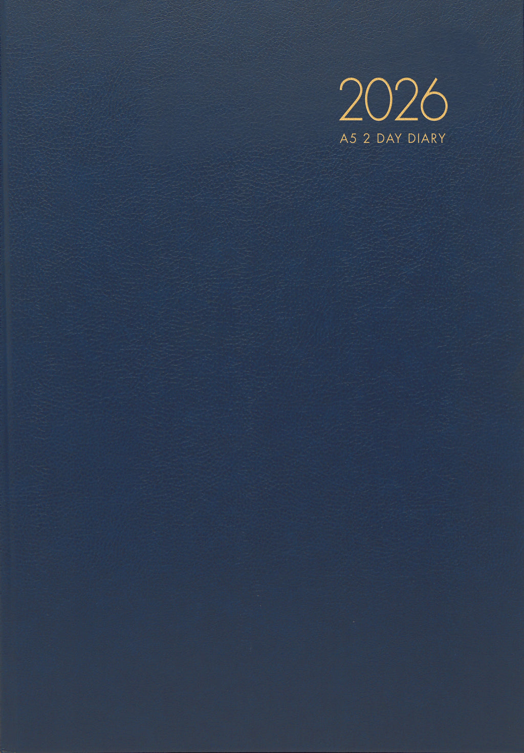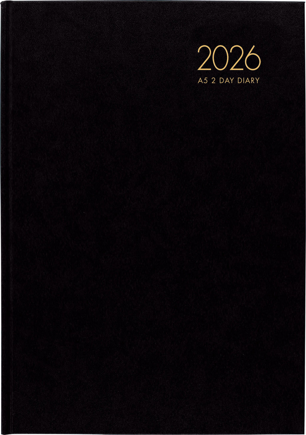 A5 size, 2 Days Per Page format, Hard Case Cover, Ribbon Marker.